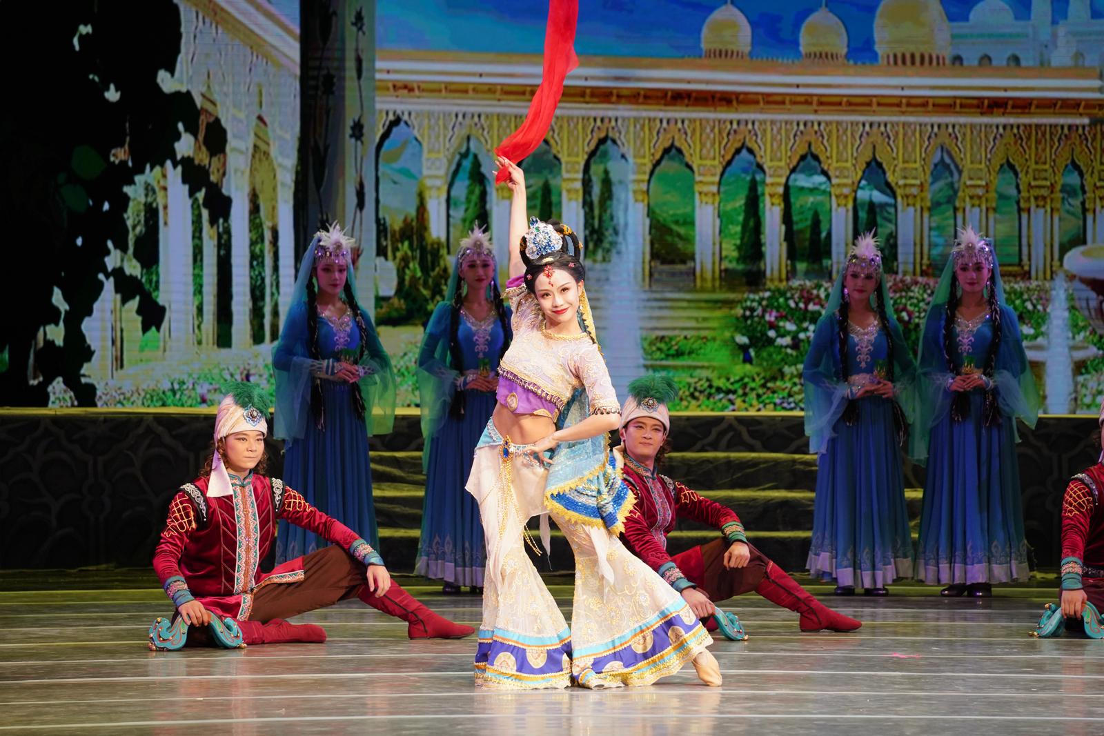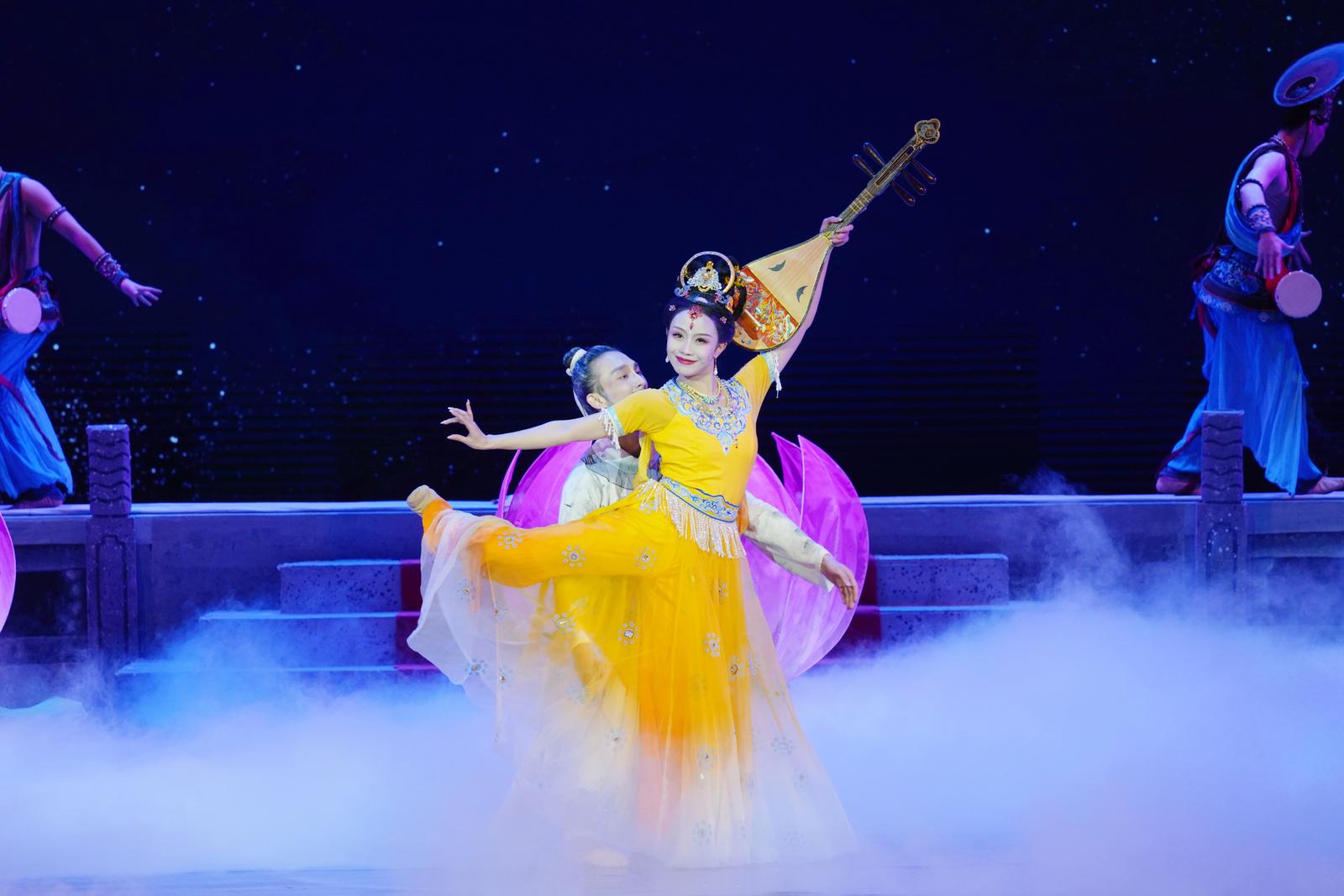 演出当晚,兰州博文科技学院会场座无虚席,灯光渐暗的瞬间便点燃了全场师生的期待。幕布拉开,演员们身着华丽服饰,足尖轻点间,将壁画中“飞天”的轻盈、“反弹琵琶”的灵动演绎得惟妙惟肖;旋转跳跃间,盛唐的市井繁华与丝路的商队络绎如在眼前。当英娘的舞姿与莫高窟壁画交相辉映,当波斯商队的欢歌与中原的乐声融合共鸣,台下师生无不沉浸其中,不时爆发出热烈的掌声。